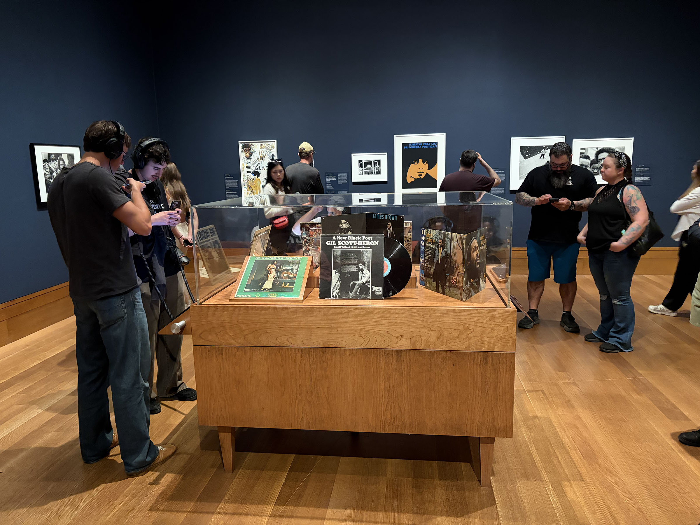One clever bit that works is a listening station for period jazz, funk, and soul, with original album art.