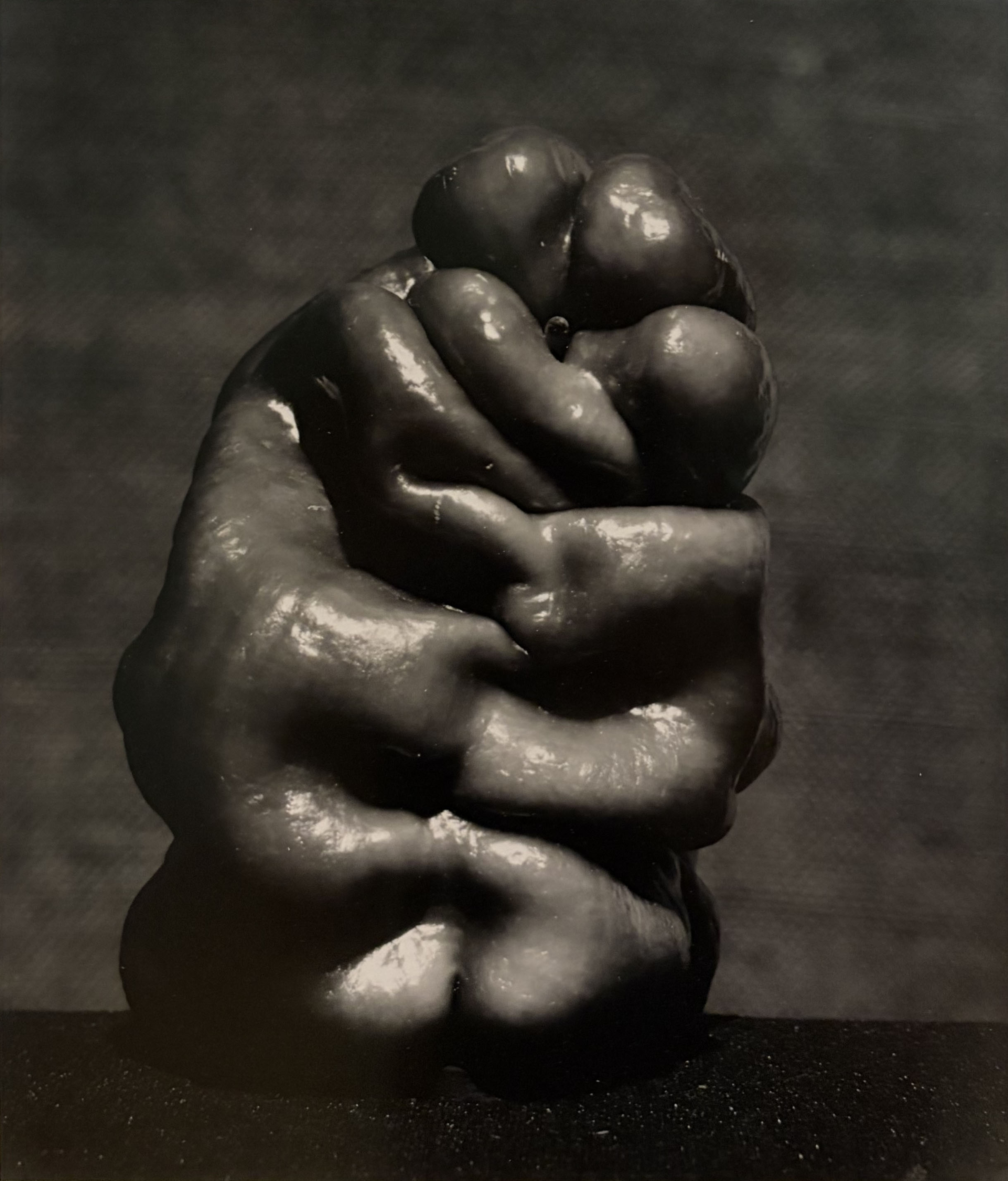 After In Sandy's Room, nudity—nudes of sizes, shapes, and colors rarely seen in art—became part of the Aguilar brand. The Huntington selection feature nudes in the U.S. Western landscape, a subject dating at least back to Anne Brigman. Another inevitable comparison is Edward Weston. Aguilar's work builds on Weston's abstracted back studies with invisible head and limbs. Weston made conventionally beautiful bodies into something monstrous. Aguilar finds austere beauty in bodies and perspectives outside the media mainstream. The show includes a 1929 Weston Pepper that rhymes with some of Aguilar's visual explorations of her own body.