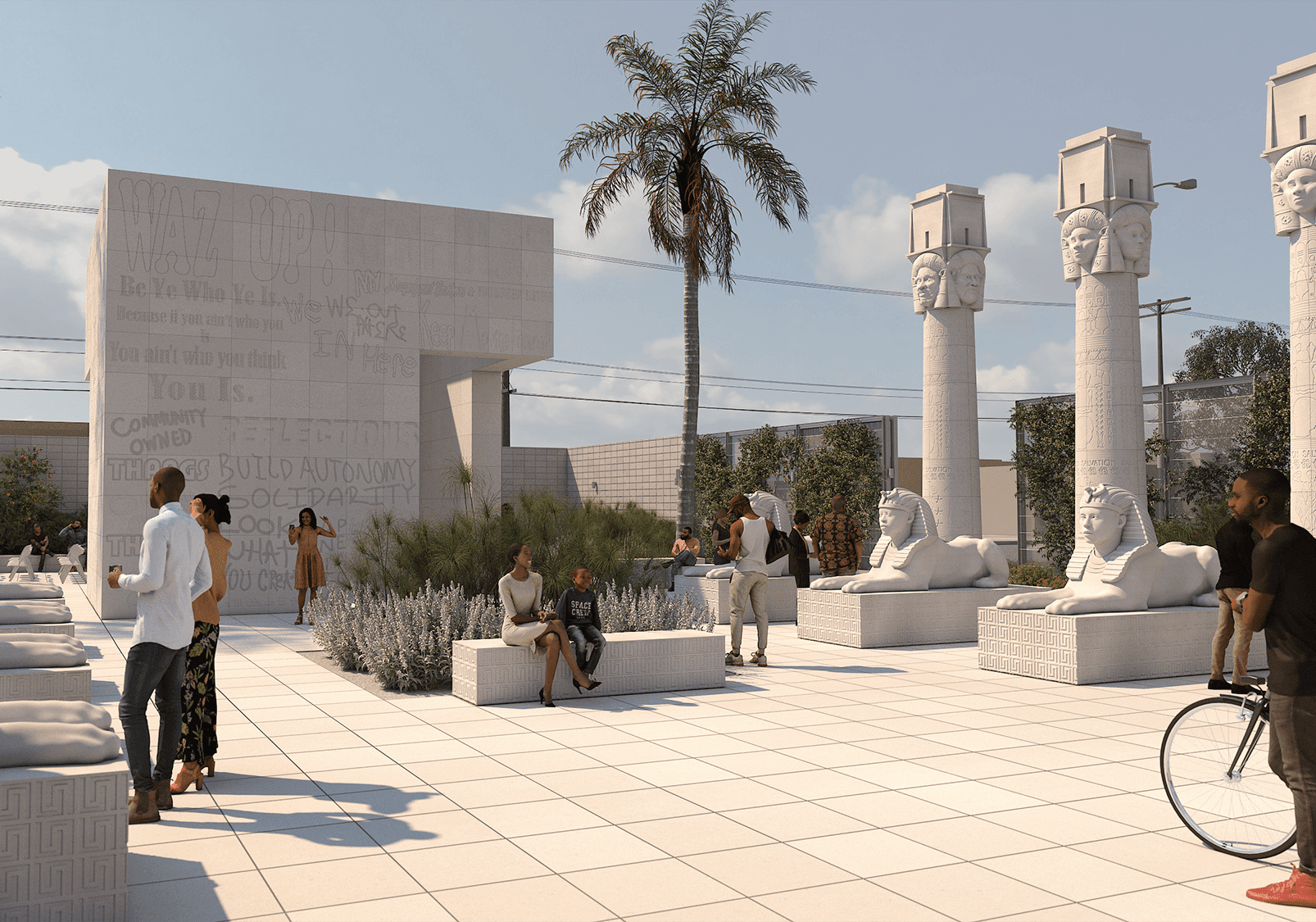 South Los Angeles has historically been a museum desert. That's changing, particularly as far as open-air public art spaces are concerned. This Saturday, Mar. 14, Lauren Halsey's Egyptian/Afrofuturist sculpture garden, sister dreamer lauren halsey's architectural ode to tha surge n splurge of south central los angeles, opens with a free block party. The artist considers sister dreamer to be the culmination of high-profile related installations at the Hammer, Studio Museum in Harlem, and the Met roof garden. The new space, at the corner of 76th St and Western Avenue, will feature film screenings, vegetable gardens, and wellness activities. More information here.