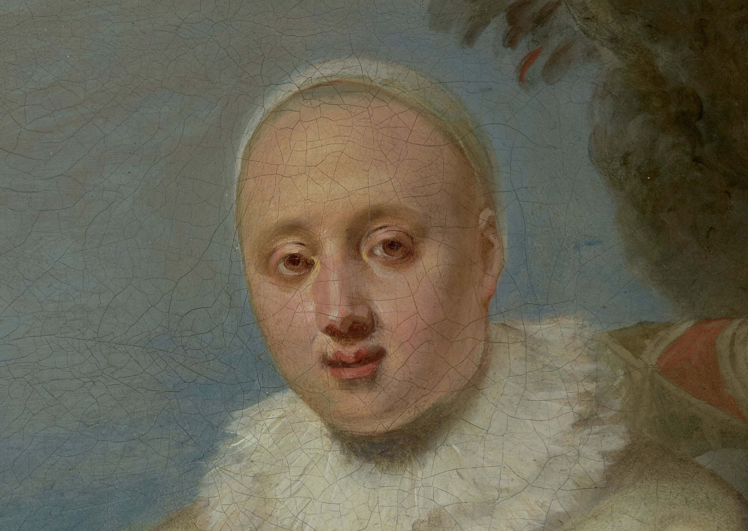 "A second painting that Watteau made in London, also entitled The Italian Comedians—acquired by the J. Paul Getty Museum in 2012—remains controversial. A large canvas with five figures, it shows an engaging, boyish Pierrot, with blond hair and ruddy cheeks, holding out his hat in his right hand as if seeking a donation. To his left, a guitar-playing Mezzetin takes a bow. Harlequin, mustachioed and masked in black, can be seen hiding behind them. There is no question that the beautifully executed central figure of Pierrot is by Watteau. A preparatory drawing for this figure with his outstretched arm in the Teylers Museum, Haarlem, shows the actor, but with a pinched and mean-spirited expression quite unlike the sympathetic clown in the finished work. Infrared reflectography has confirmed that Watteau initially followed his drawing and painted Pierrot with precisely the same face but altered the canvas as he completed it. The surrounding figures are not handled as suavely. The faces of the two actors at right are painted more broadly—they might have stepped out of a canvas by Frans Hals. [Guillaume] Faroult, in his discussion of the Getty picture, which he catalogs as “attributed to Watteau, Jean-Baptiste Pater and an anonymous collaborator,” expresses the hope that the “confrontation” with the Louvre’s Pierrot in the exhibition would help resolve the issue once and for all. In fact, as Alan Wintermute first proposed in 2012, seeing the paintings from the National Gallery of Art and the Getty in fairly close proximity made it possible to confirm that they are both by the same hand, undeniably Watteau’s alone."