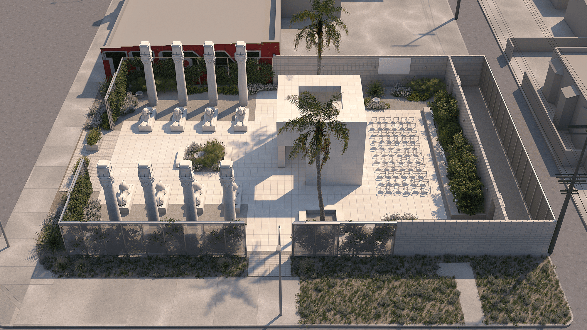 Speaking of parties changing the world: The first major event held at LACMA’s new addition will be the Vanity Fair Oscar Party, Hollywood’s biggest celebration of the year relocating to the museum’s grounds. Govan, ever the showman, giddily swings me under concrete cathedrals where the main nave of the event will be, into a glass-walled convex orb where the traditional post-Oscars In-N-Out burgers will be served.