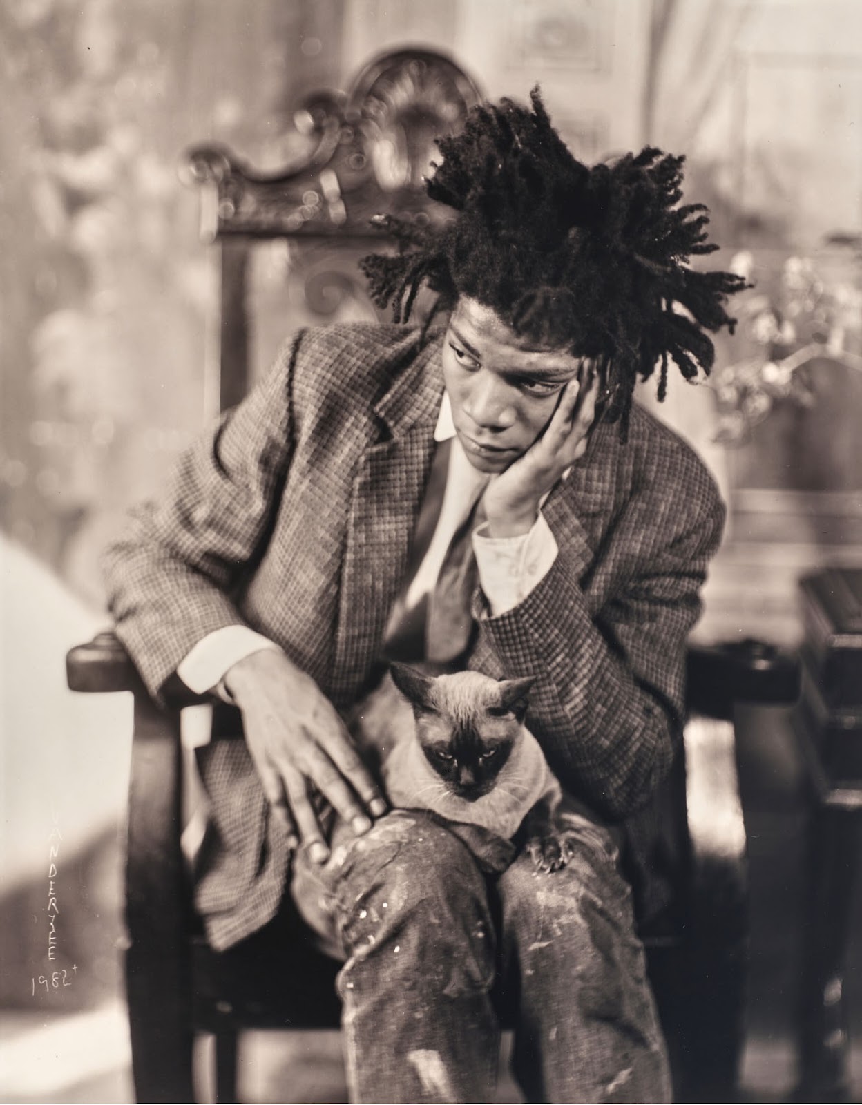 Harlem Renaissance portraitist James Van Der Zee was 96 when he photographed 22-year-old Jean-Michel Basquiat in the latter's "best" creative year, 1982. Van Der Zee died the next year; Basquiat had only six more years.