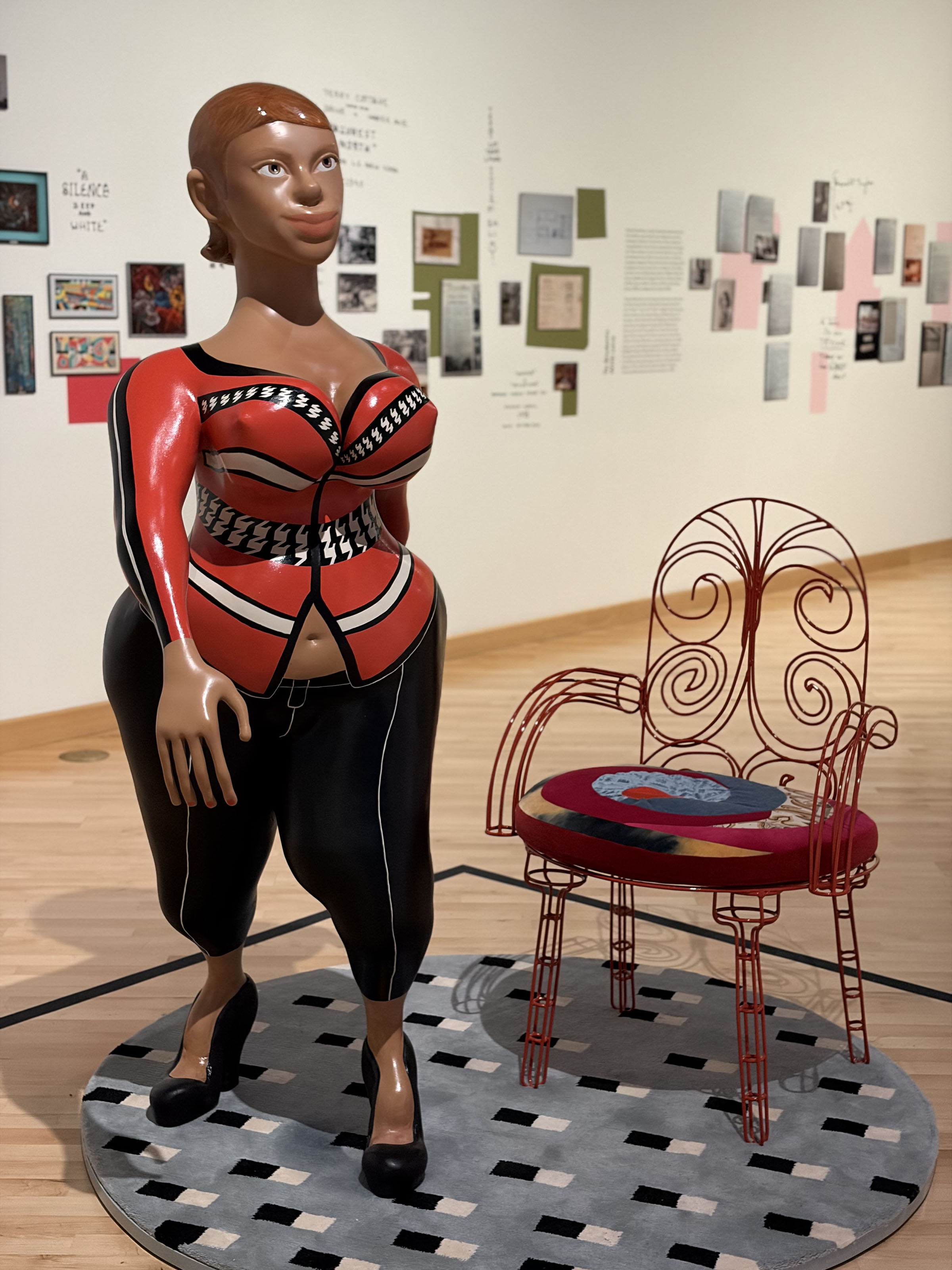 Tschabalala Self created an cartoon avatar of Meredith via 3D printing. The houndstooth-trimmed outfit is based on a 1973 photograph of the architect and Edna Colson.