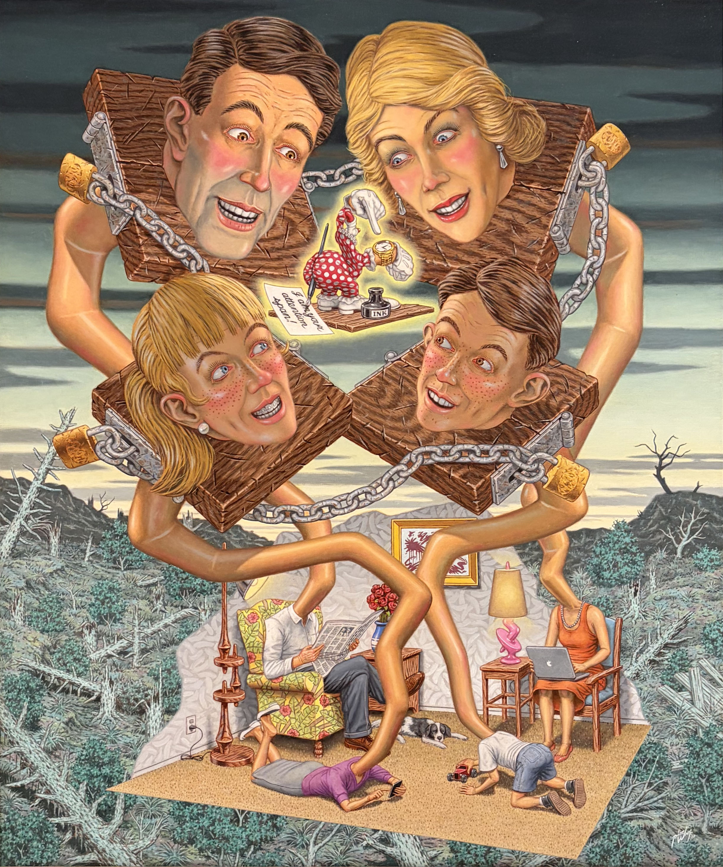 I wish I had made [William-Adolphe] Bouguereau’s Dante and Virgil. I saw it in Paris; it is a life-sized painting. The strong composition, powered by bodies and eyes, drew me in. Dante, Virgil, and a demon watch the struggle between two naked damned souls. One of the young men has his teeth in the throat of the other—in the front of the throat, right below the mouth. The circle of observers so close to the action is a recurrent theme in my work. The delicate erotic element is a theme I would like to explore in my own work.